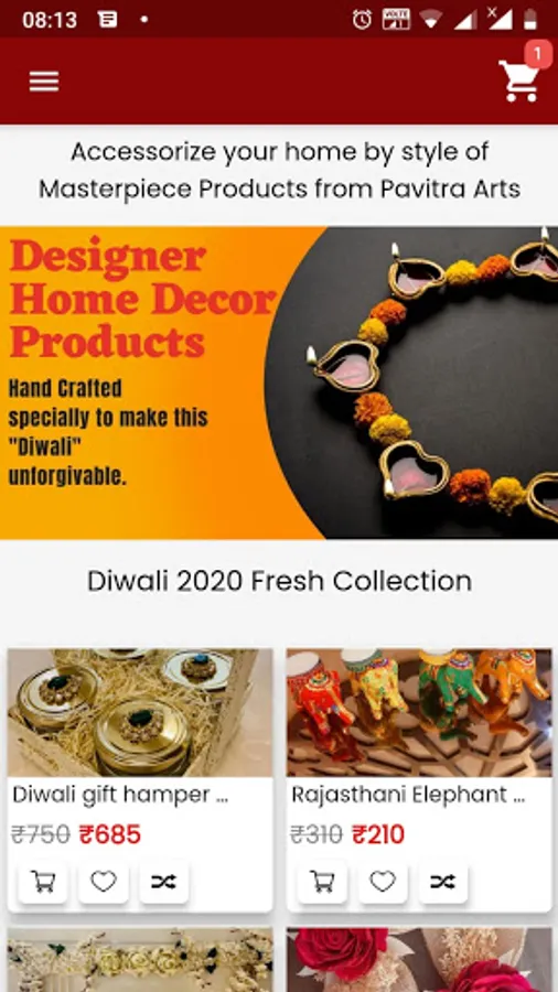 Live your dream and Jewel your home with crowning Bhandarwal, Toran, Rangoli, Diyas, and several ethnic products, only available at Pavitra Arts mobile shopping app.