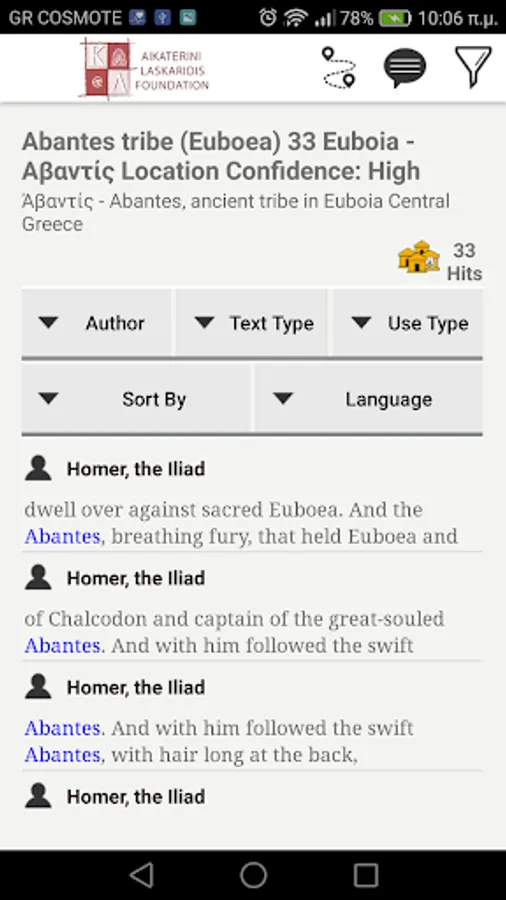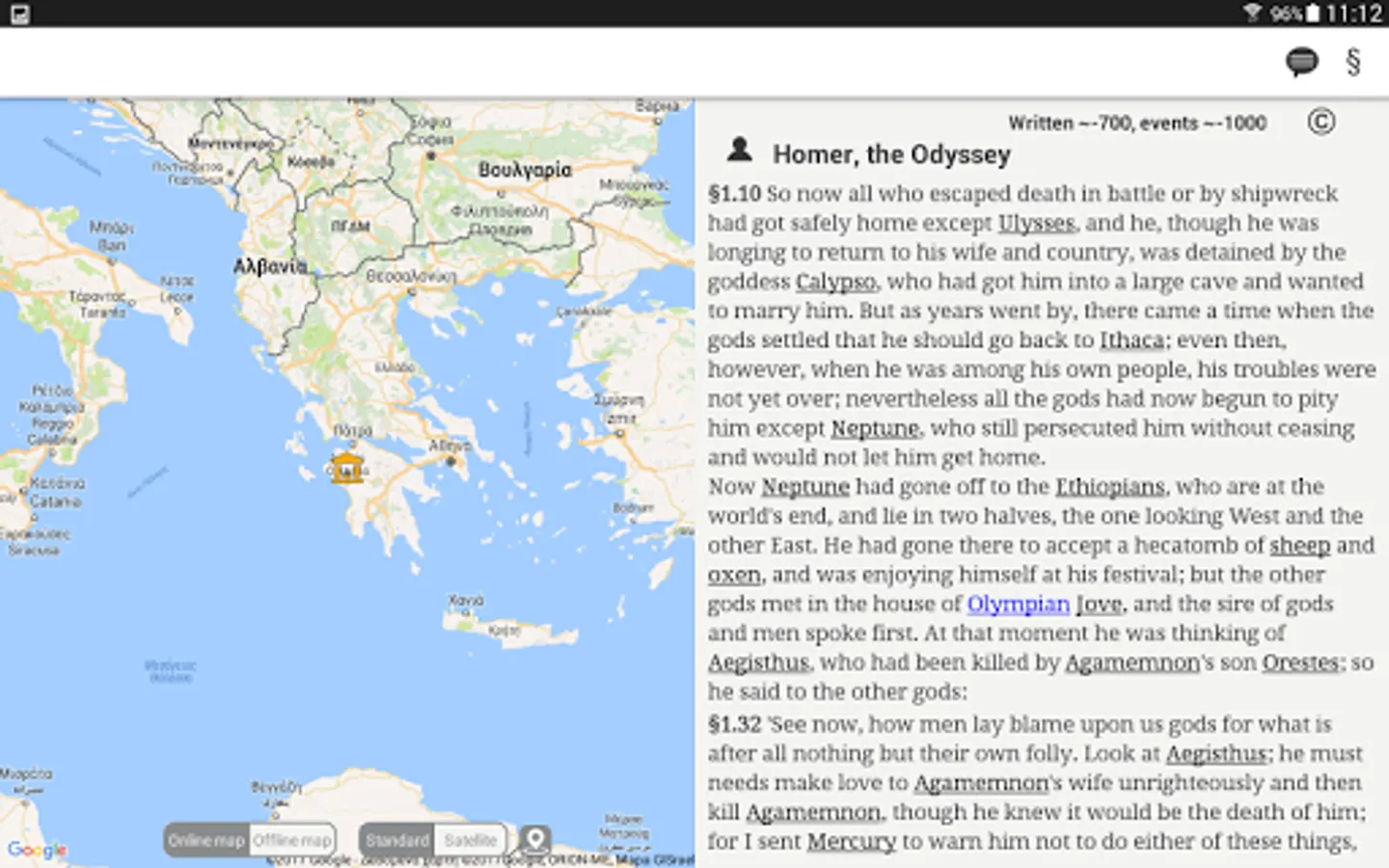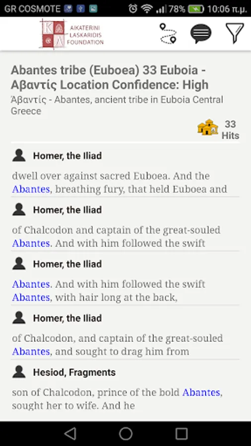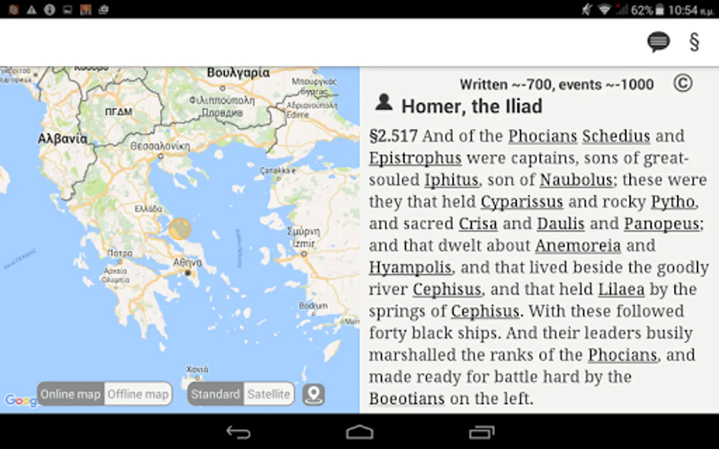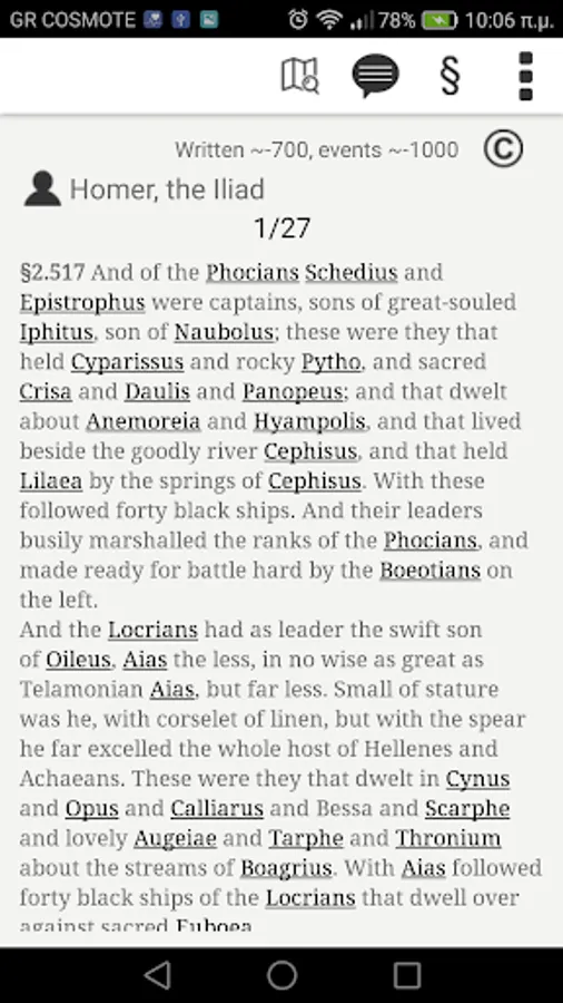 ToposText is a new interface that links readers and travelers to Europe’s most ancient literary culture and to the Greek landscape that inspired it. TT presents 5000 places relevant to the ancient Greek world -- ancient cities and shrines, medieval castles and towers, modern museums and excavation sites -- primarily in Greece but including major places from Spain to the Caucasus. It links those places to the ancient authors who wrote about them in Greek or Latin. A large classical library married to an up-to-date gazetteer, freely available as a mobile application or this web site.