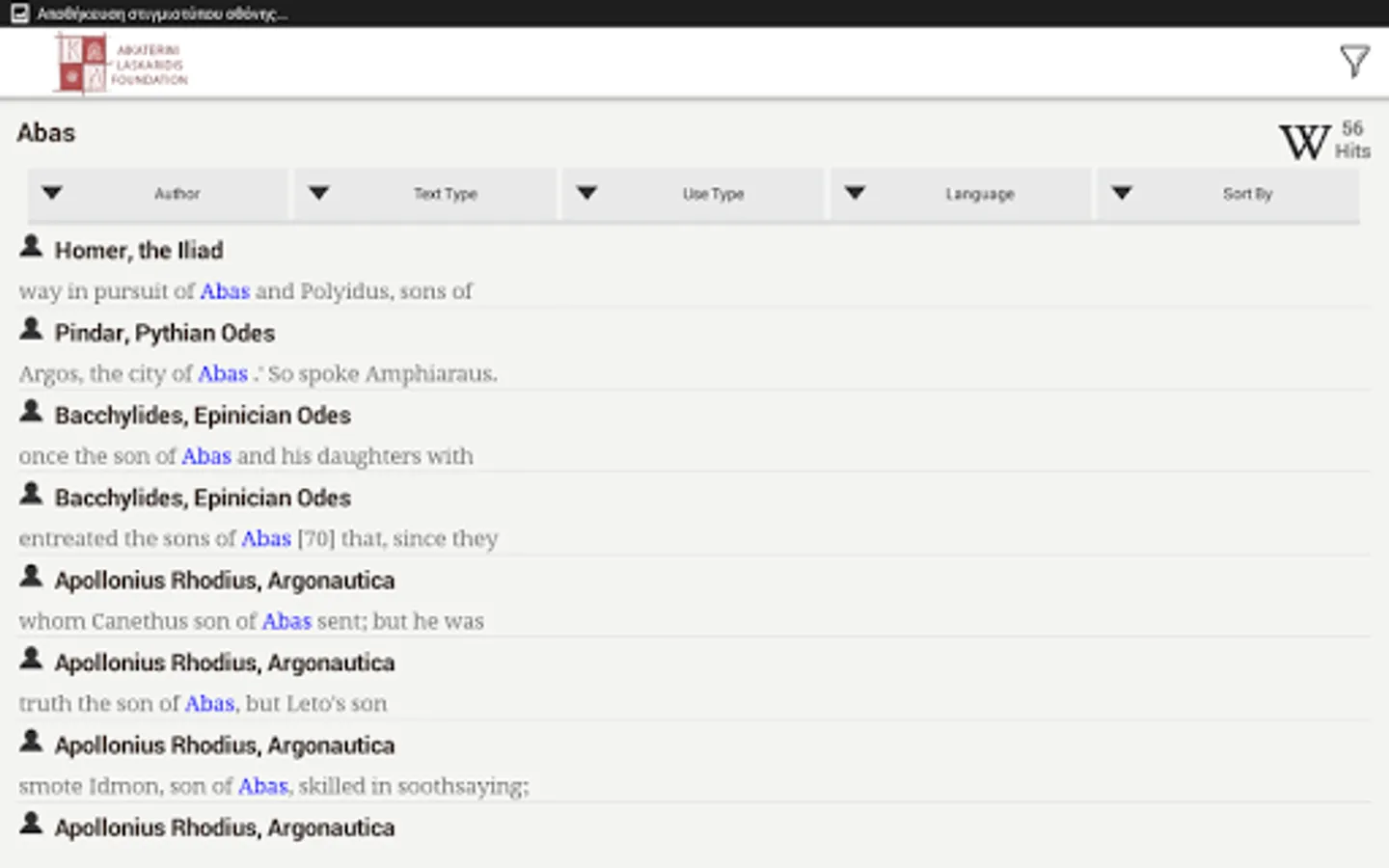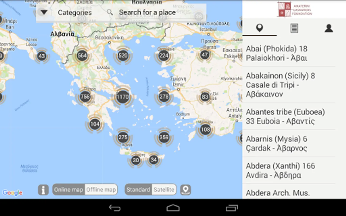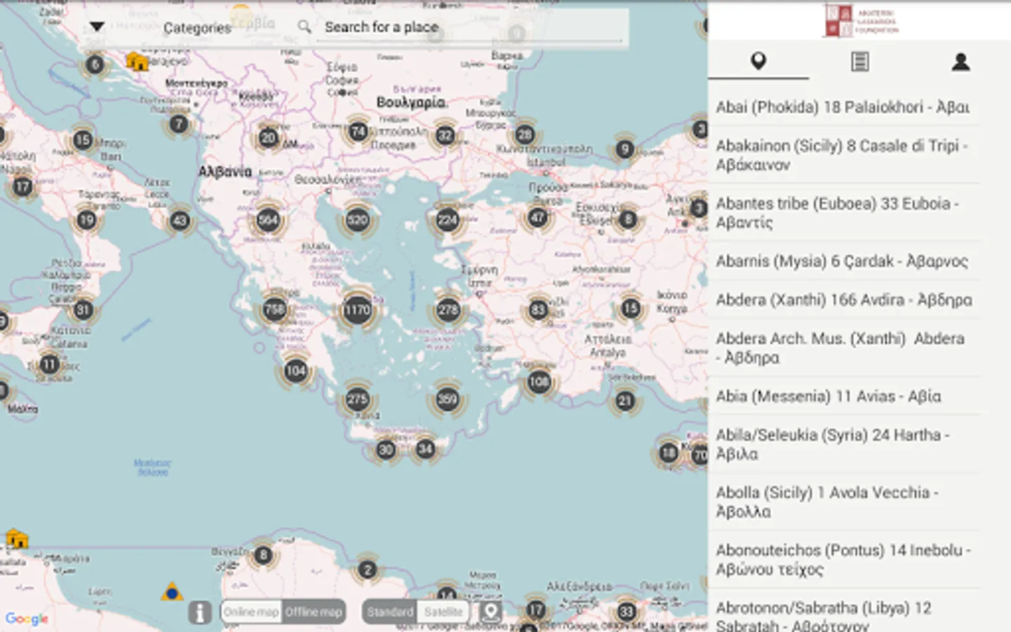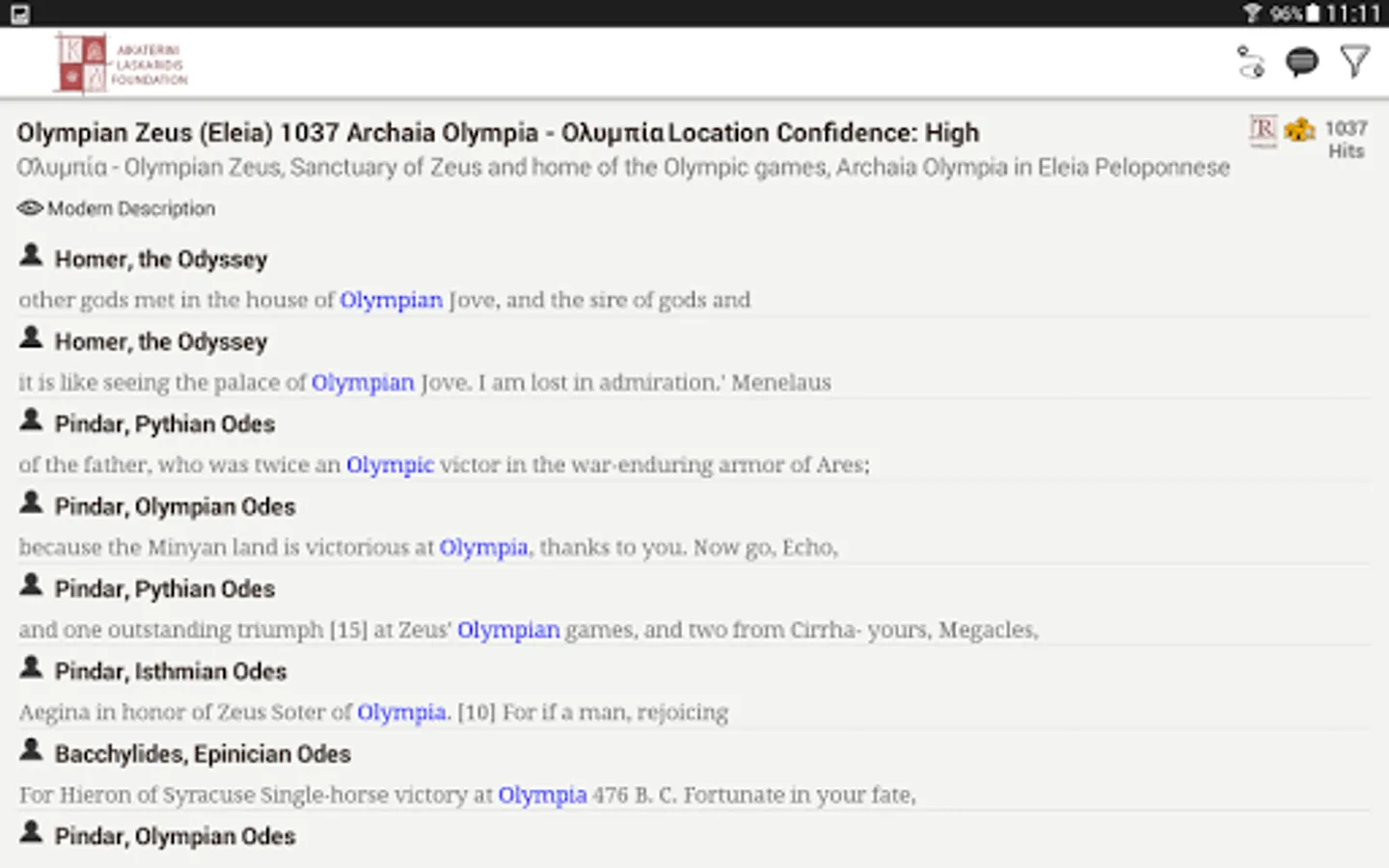 - Each site indexed to the ancient literary sources that mention it.