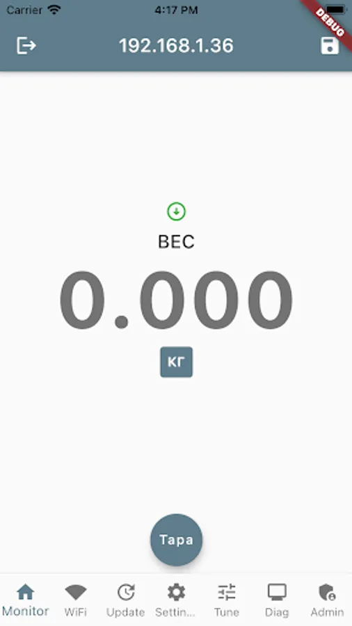Diagnostics and device settings control strain-signal amplifier normalizing (UTN-4 / UTN-4 with WiFi interface). UTN-4 is used in weighing-measuring and weighing-dosing systems for converting a signal from strain-gauge sensors into a unified signal 0-20mA / 4-20mA for connection to ACS systems or external indicating devices