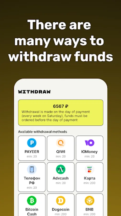 In addition, in Easy Flow, you can withdraw your earned money to a card (MIR, Visa, Mastercard), to cryptocurrency and popular payment systems such as QIWI, Payeer, YooMoney and AdvCash. It is also possible to receive a payment on a mobile phone. You can choose a convenient way to withdraw money and get your earned funds in the shortest possible time.