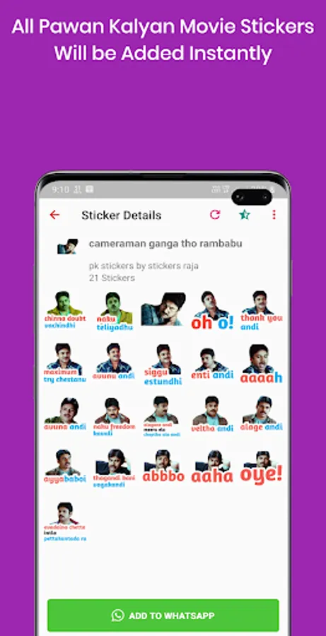 Our App contain All pawan kalyan movie stickers,Janasena Stickers.