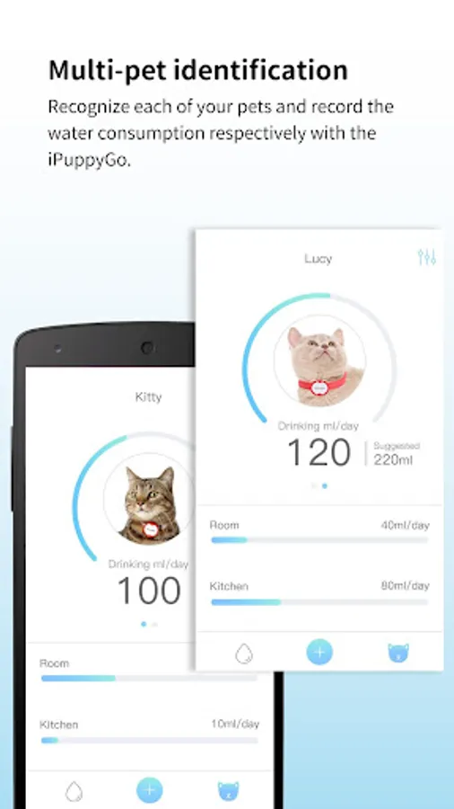 .Multi-pet identification | Recognize each of your pets and record the water consumption respectively with the iPuppyGo