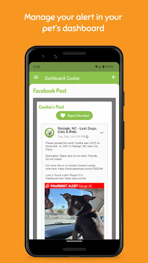 5. You can supercharge your PawBoost Alert with a locally-targeted Facebook or Instagram ad campaign. Get more views, more shares, more leads, and most importantly: A better chance of a happy reunion.