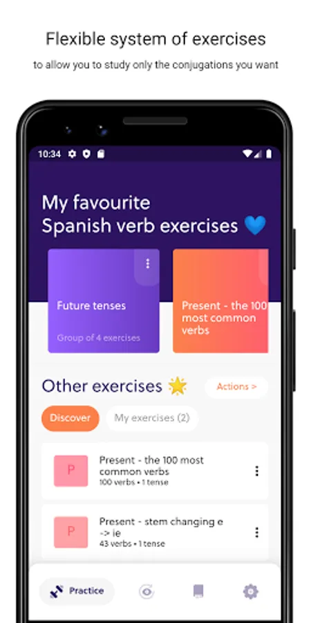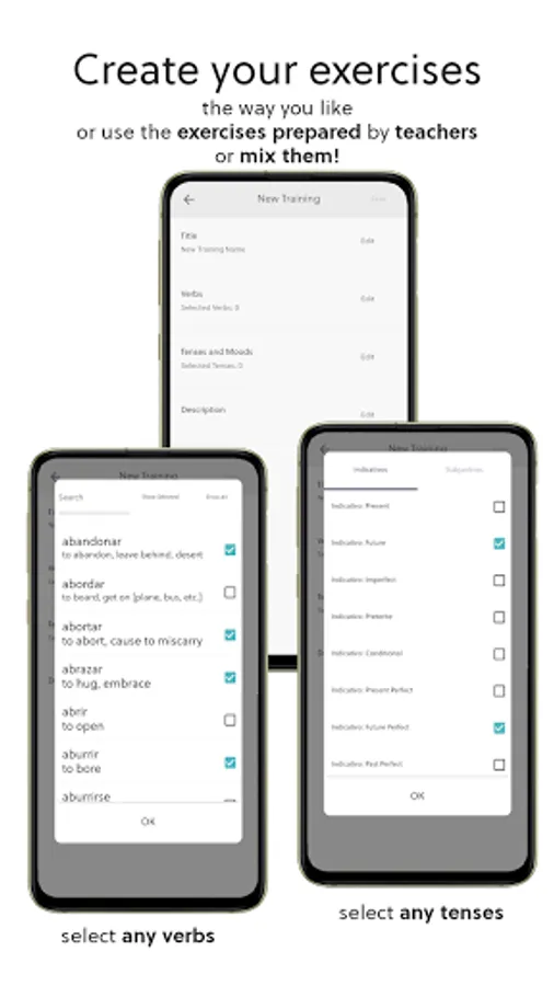 Create a new exercise or duplicate and edit an existing one. Select the verbs and tenses you want to practice.