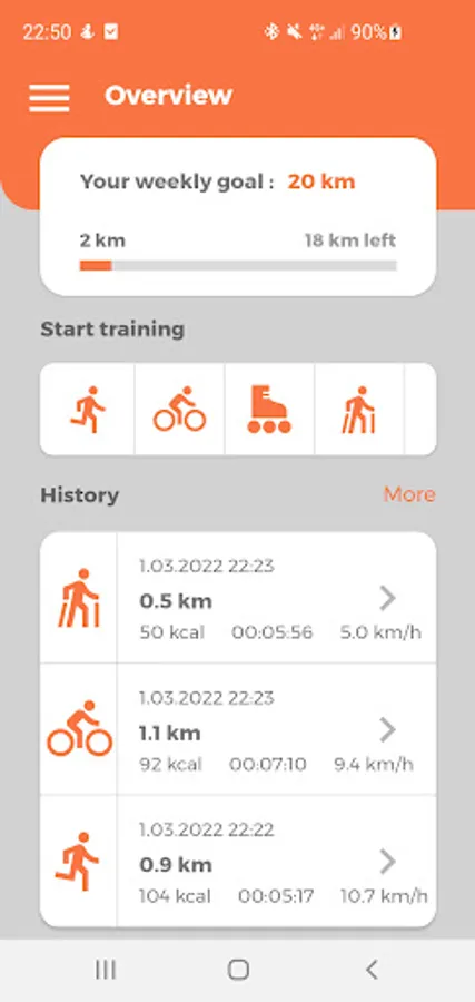 Track all of your activities, such as running, cycling, nordic walking. You can get distance what you've made and check the route on the map! Set your weekly km goal and try to achieve it! You can check the history of all your trainings