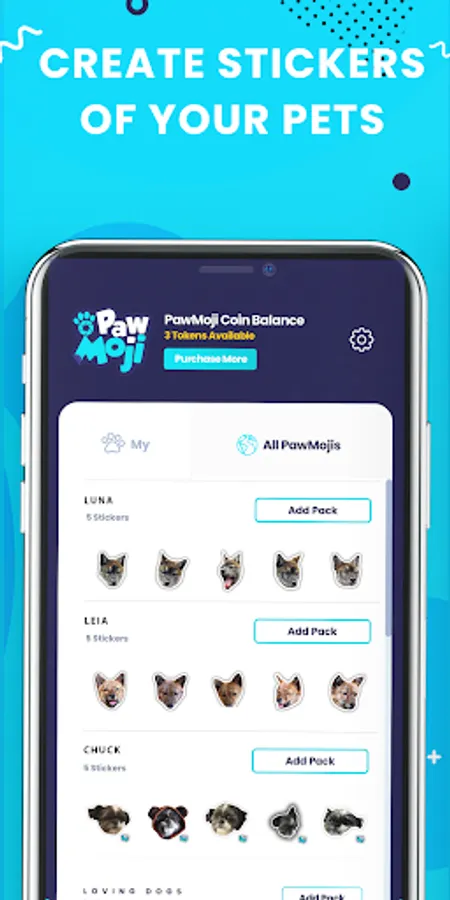 We'll create the first sticker for you and additional PawMojis can be purchased. Remember: Every purchase provides food for local animal shelter and rescue organizations.