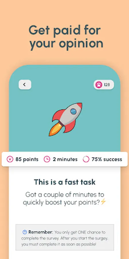 ● Earn rewards quickly - average survey pays between 20 and 200 points