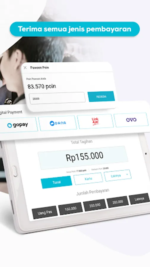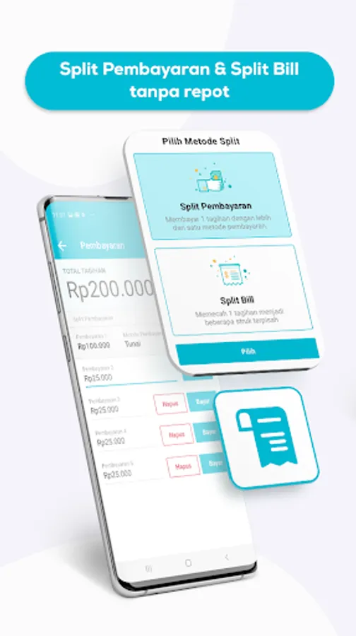• Split pembayaran - Pelanggan dapat menggunakan beberapa macam metode pembayaran dalam satu transaksi yang sama