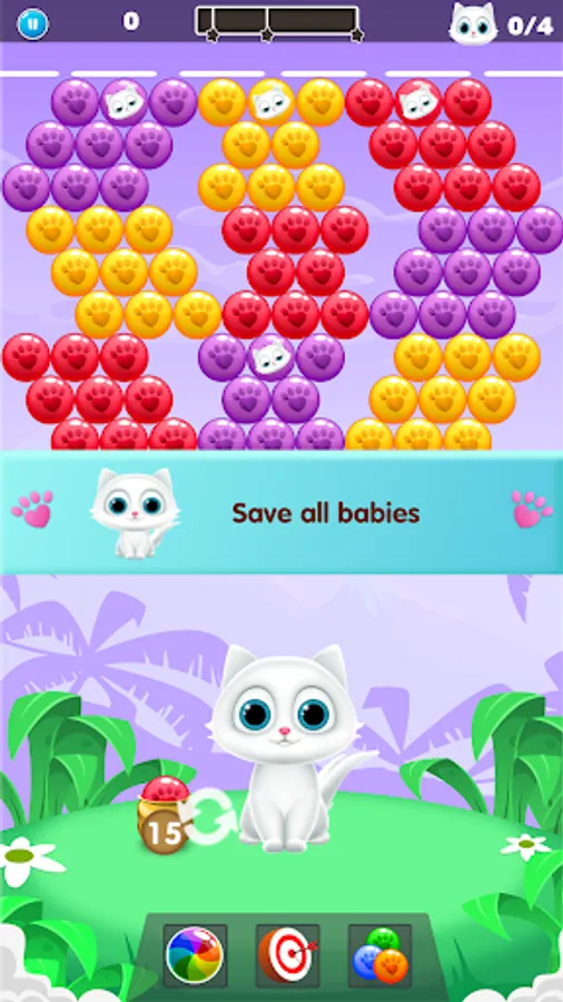 Pawpaw cat is waiting for your help to save the little cats with cute balls and cute animations.