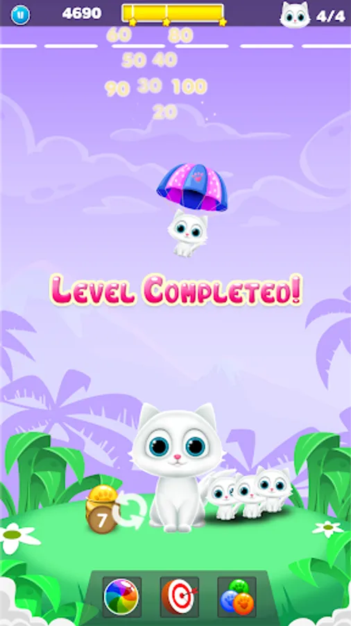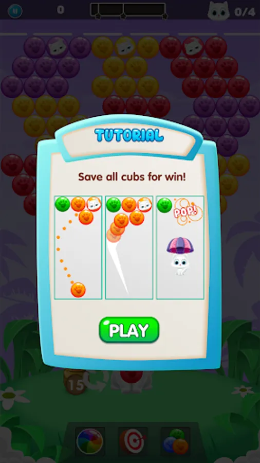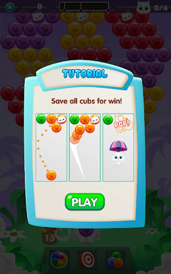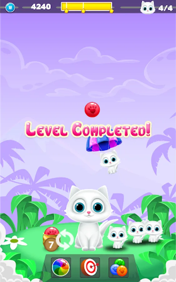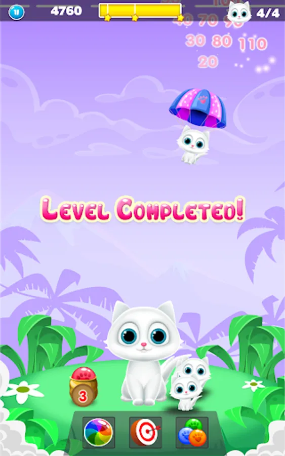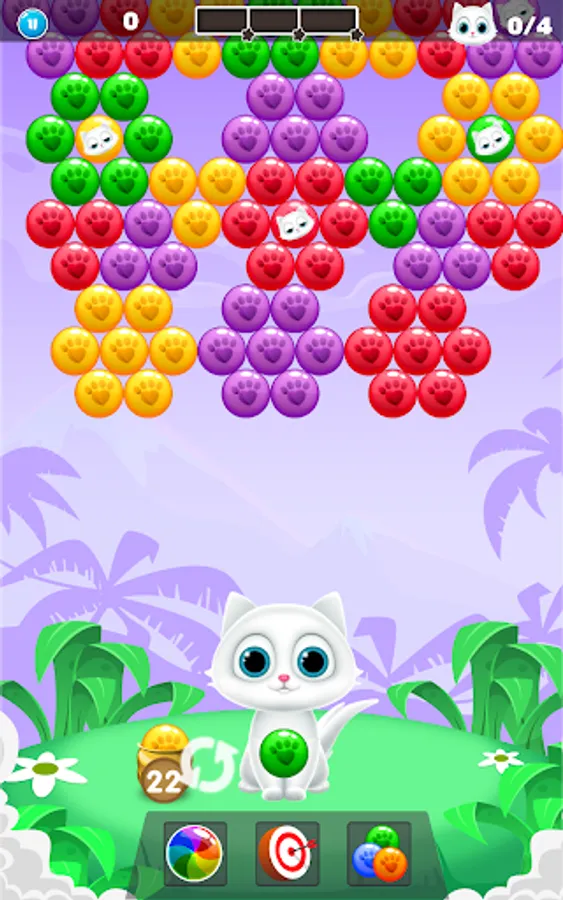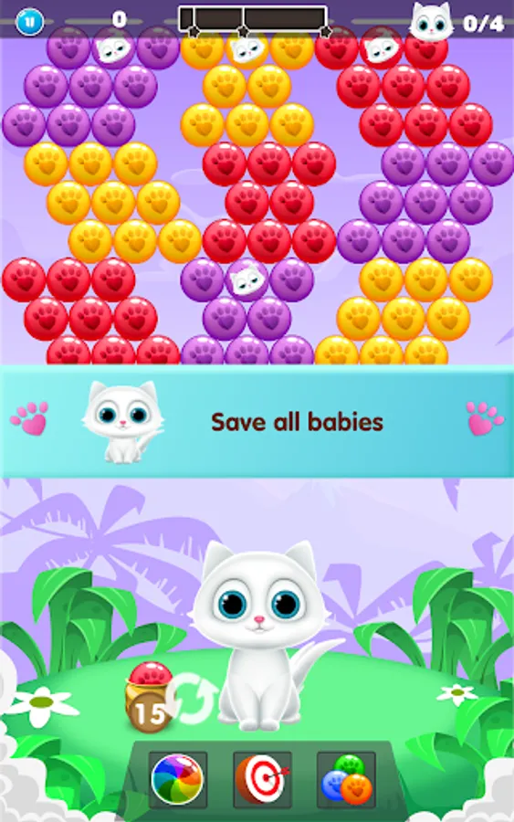 -You need to aim & blast, drop & burst all colorful bubbles of the same color in order to save cute kittens.