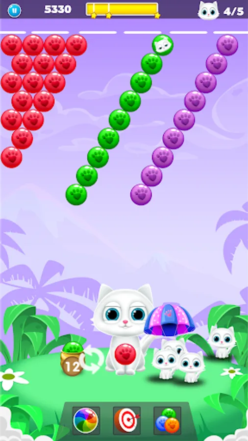 Pawpaw Bubble Shooter is a bubble shooter and balloon blasting game where you can blow bubbles with colorful balls, paw points, long shooter features, and help the mother cat rescue her kittens.