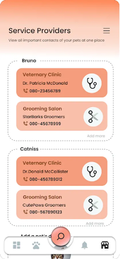 * Browse Veterinary clinics, Groomers around you using quick search