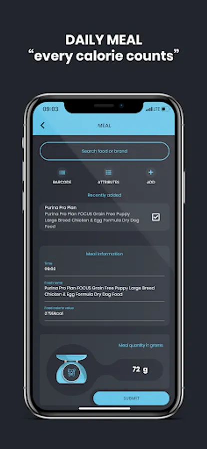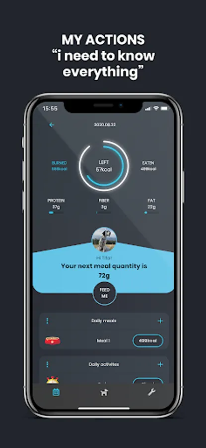 NUTRITION CALCULATOR FOR OPTIMAL FEEDING: Every dog food has its instructions but none of them are specifically tailored to your dog. In a way, this nutrition app (or we can even say dog food app) is a glorified nutrition calculator that takes the ingredients of the chosen dog food, your dog's data (breed, sex, weight, age, height, etc.), and the dog's exercise activity, and crunches the numbers in accordance with the established veterinarian formulas. The result shows you the best dog diet, by offering the optimal amount of food your dog needs per each meal in a day.