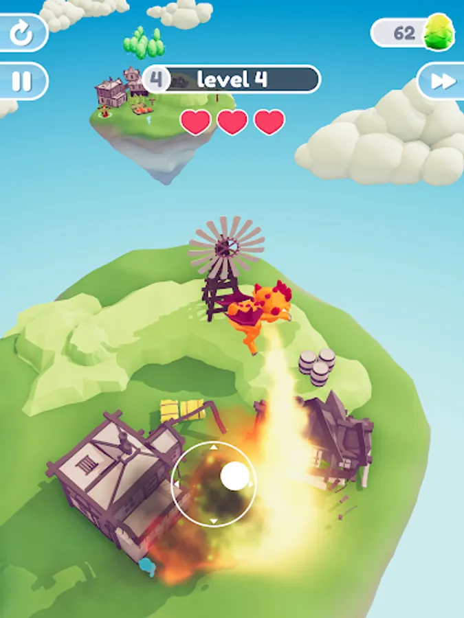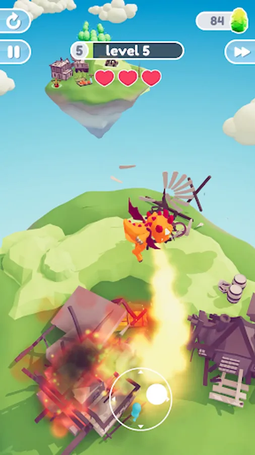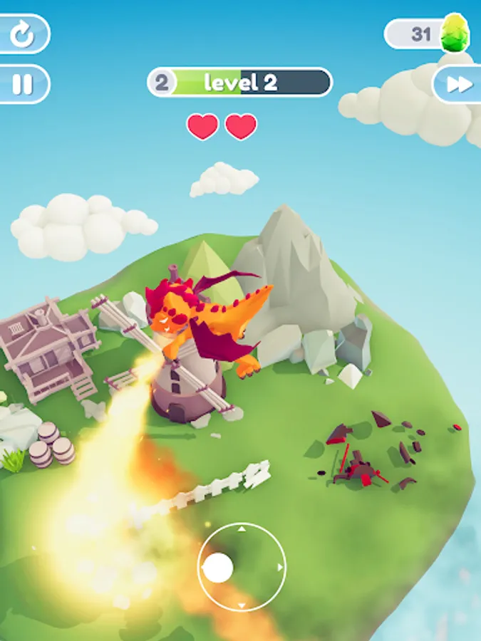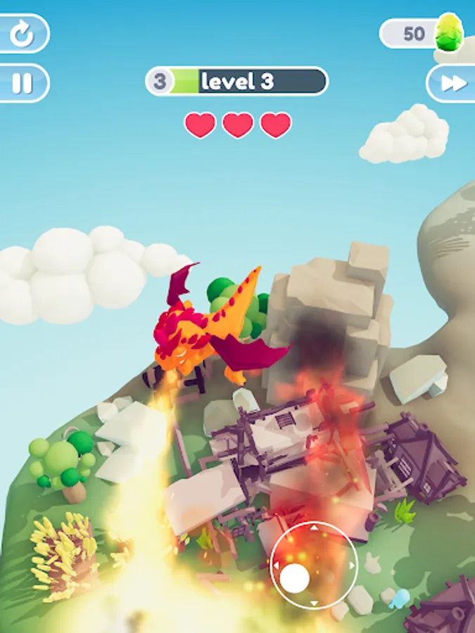 Play as a dragon and destroy everything in your path! Collect eggs at the beginning of the level to get stronger and do more damage. Destroy settlements with fire. Dodge the ballista to stay alive. Show who the real Dragon's Master!