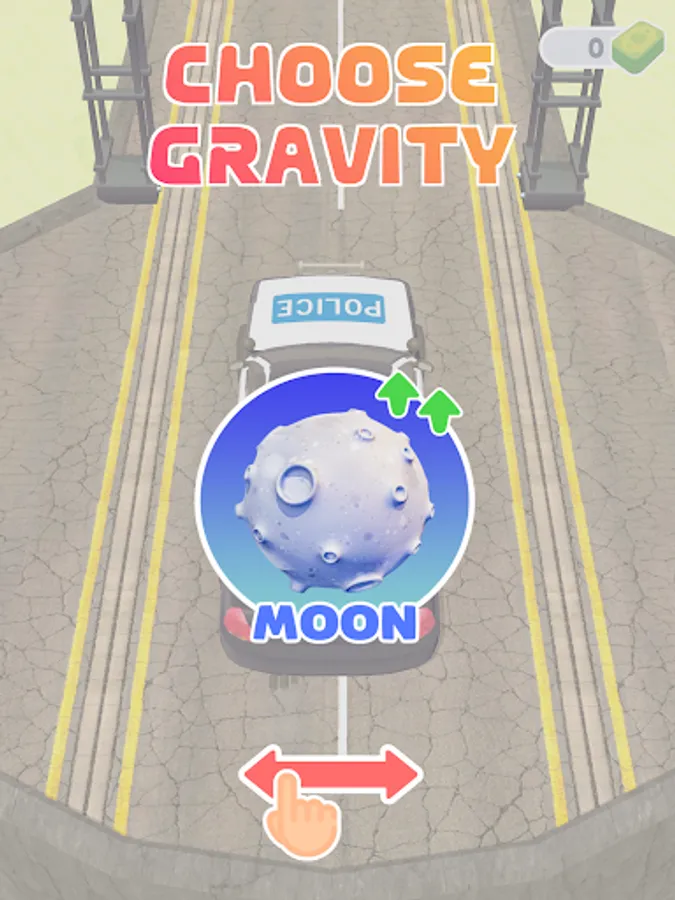 Select and try a different levels of gravitation and guide your car around different settings with the aim of keeping your balance. You've got to balance propulsion and speed to manuever the obstacles, gather coins and score the highest point, just be careful - you wont survive the crash!