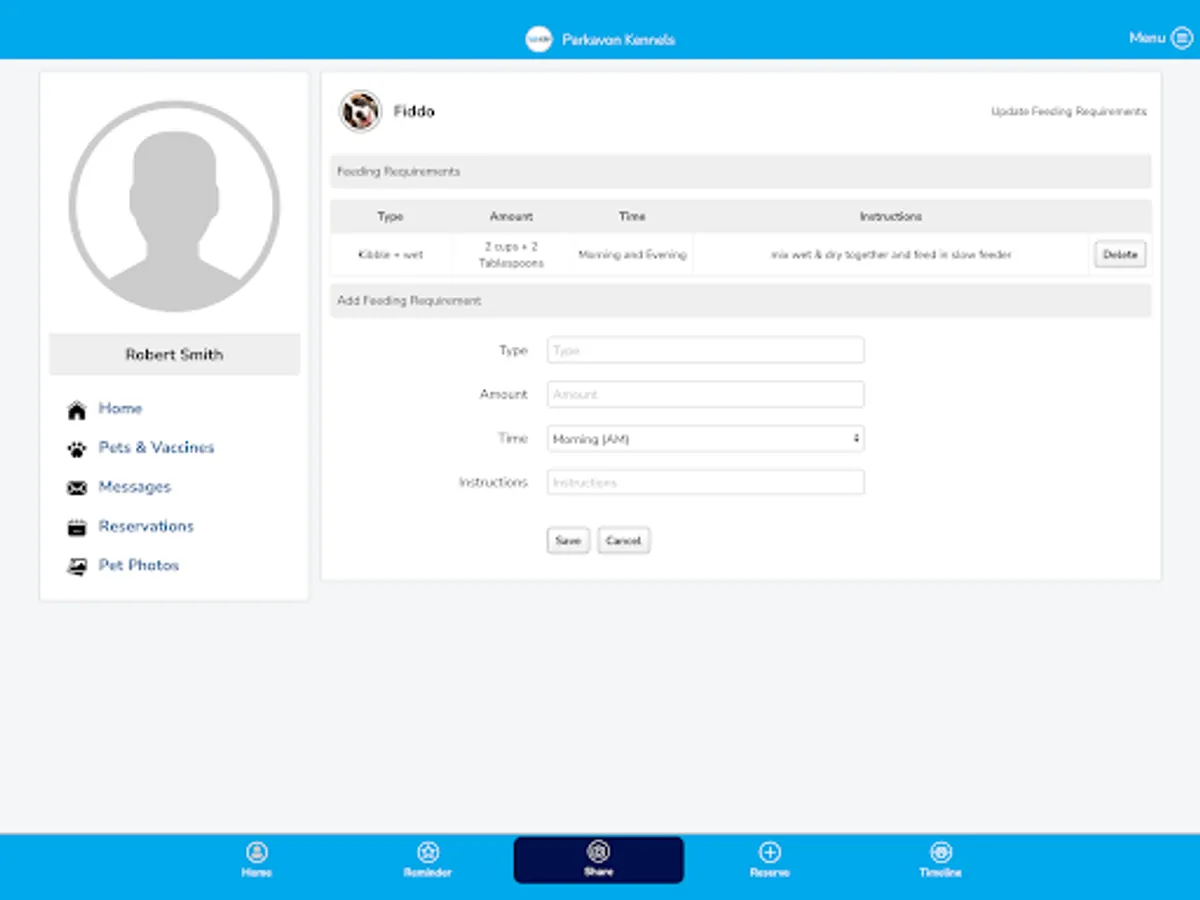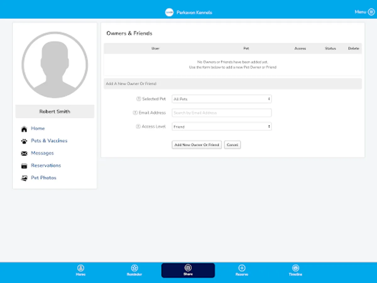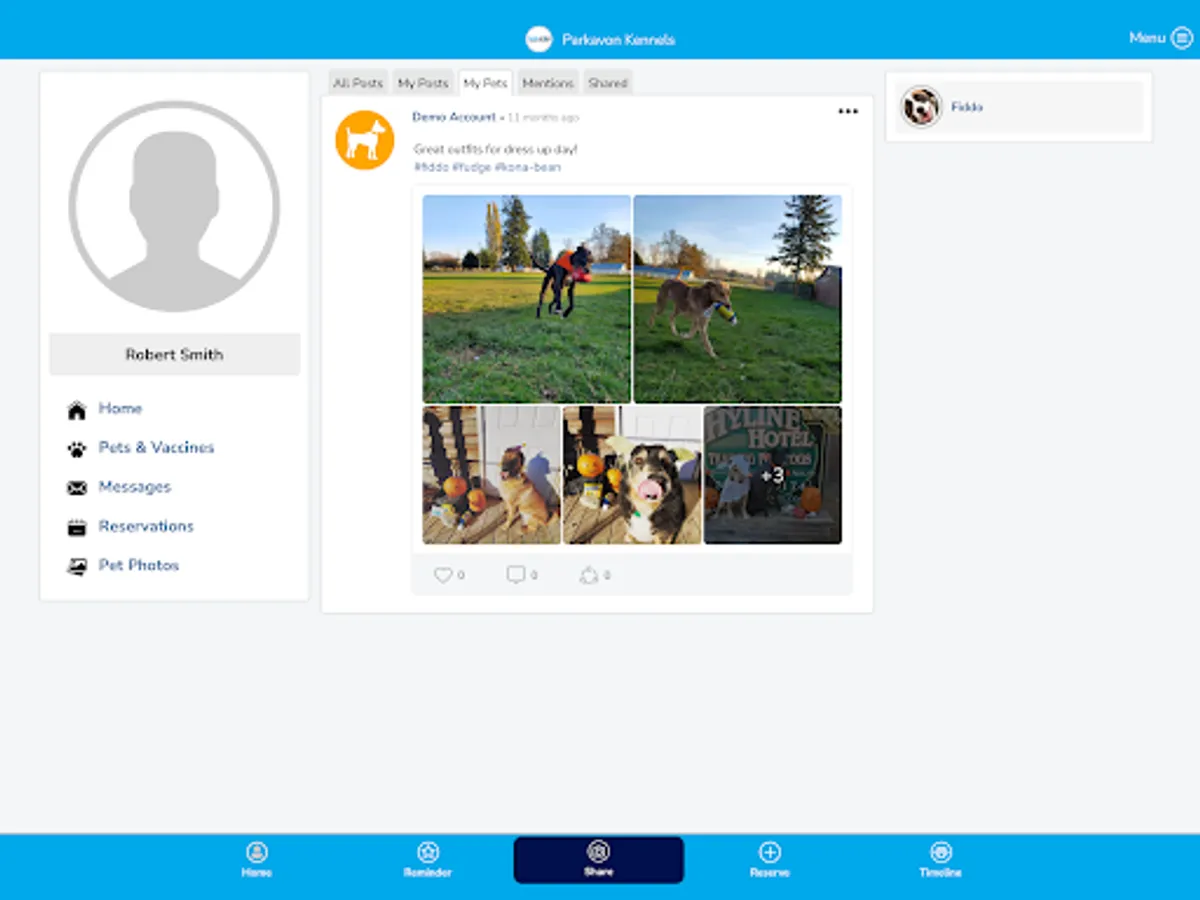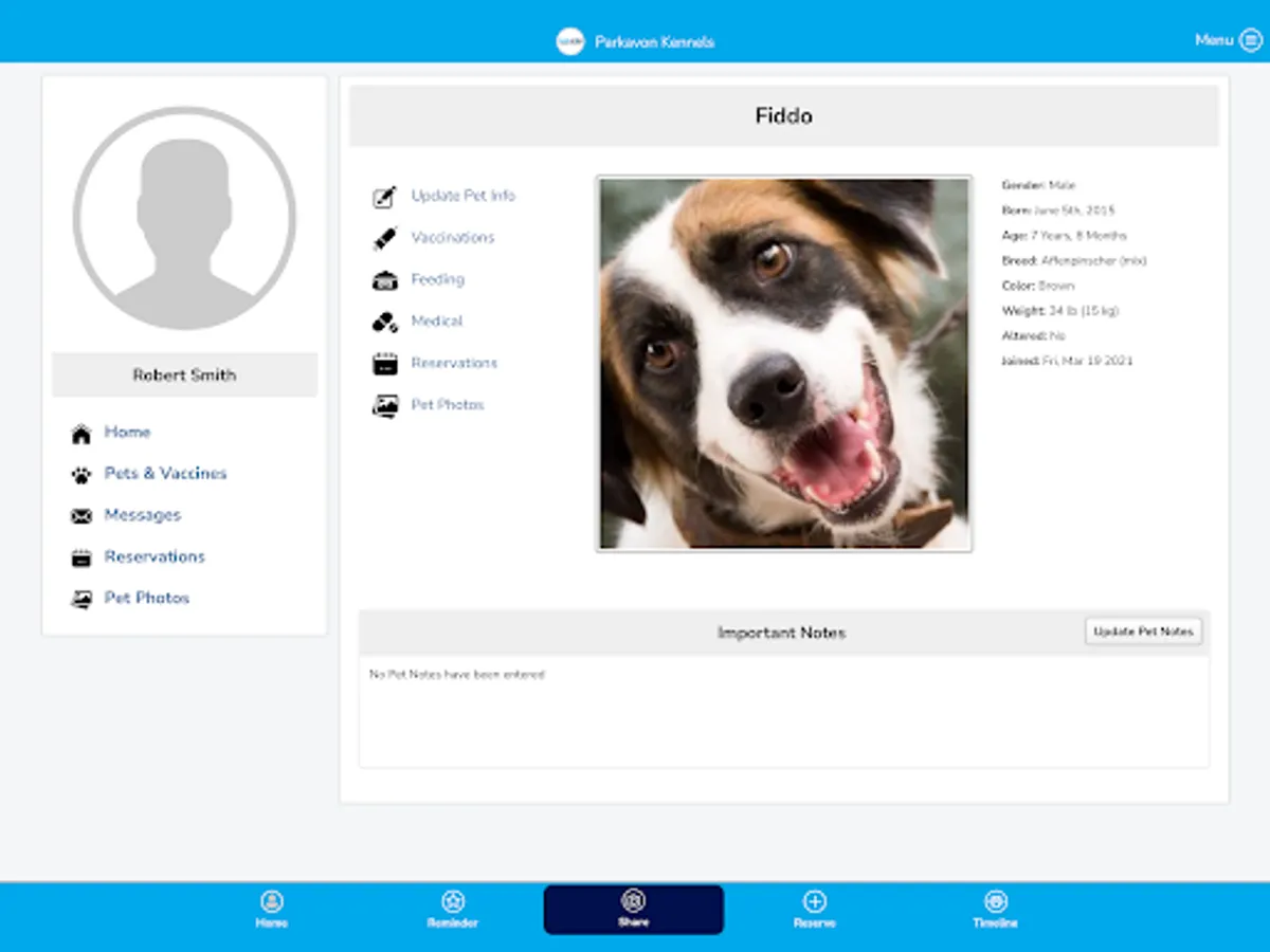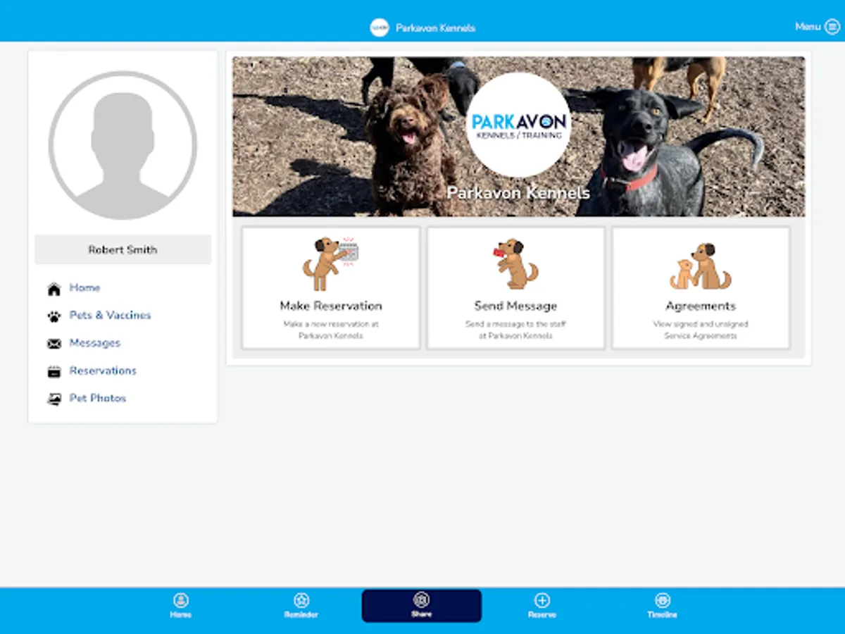 The Parkavon Kennels' App enables users to make reservations, purchase package credits, see and pay invoices, message with Parkavon Kennels, see photos of their pets, and more. Employees of Parkavon Kennels are able to manage the business and connect with customers. This app is made specifically for the customers and employees of Parkavon Kennels.