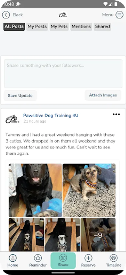 The Pawsitive Dog Training 4U App enables users to make reservations, purchase package credits, see and pay invoices, message with Pawsitive Dog Training 4U, see photos of their pets, and more. Employees of Pawsitive Dog Training 4U are able to manage the business and connect with customers. This app is made specifically for the customers and employees of Pawsitive Dog Training 4U.