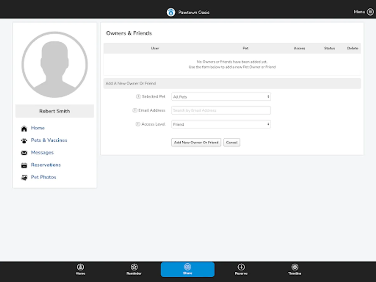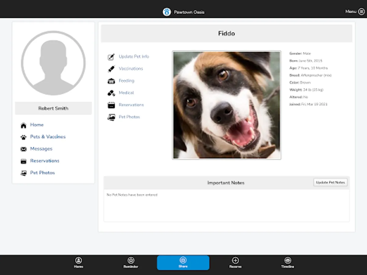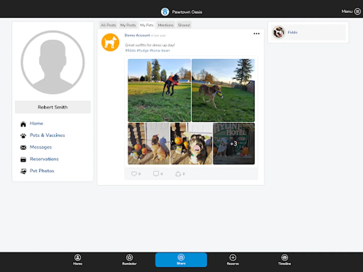 The Pawtown Oasis App enables users to make reservations, purchase package credits, see and pay invoices, message with Pawtown Oasis, see photos of their pets, and more. Employees of Pawtown Oasis are able to manage the business and connect with customers. This app is made specifically for the customers and employees of Pawtown Oasis.