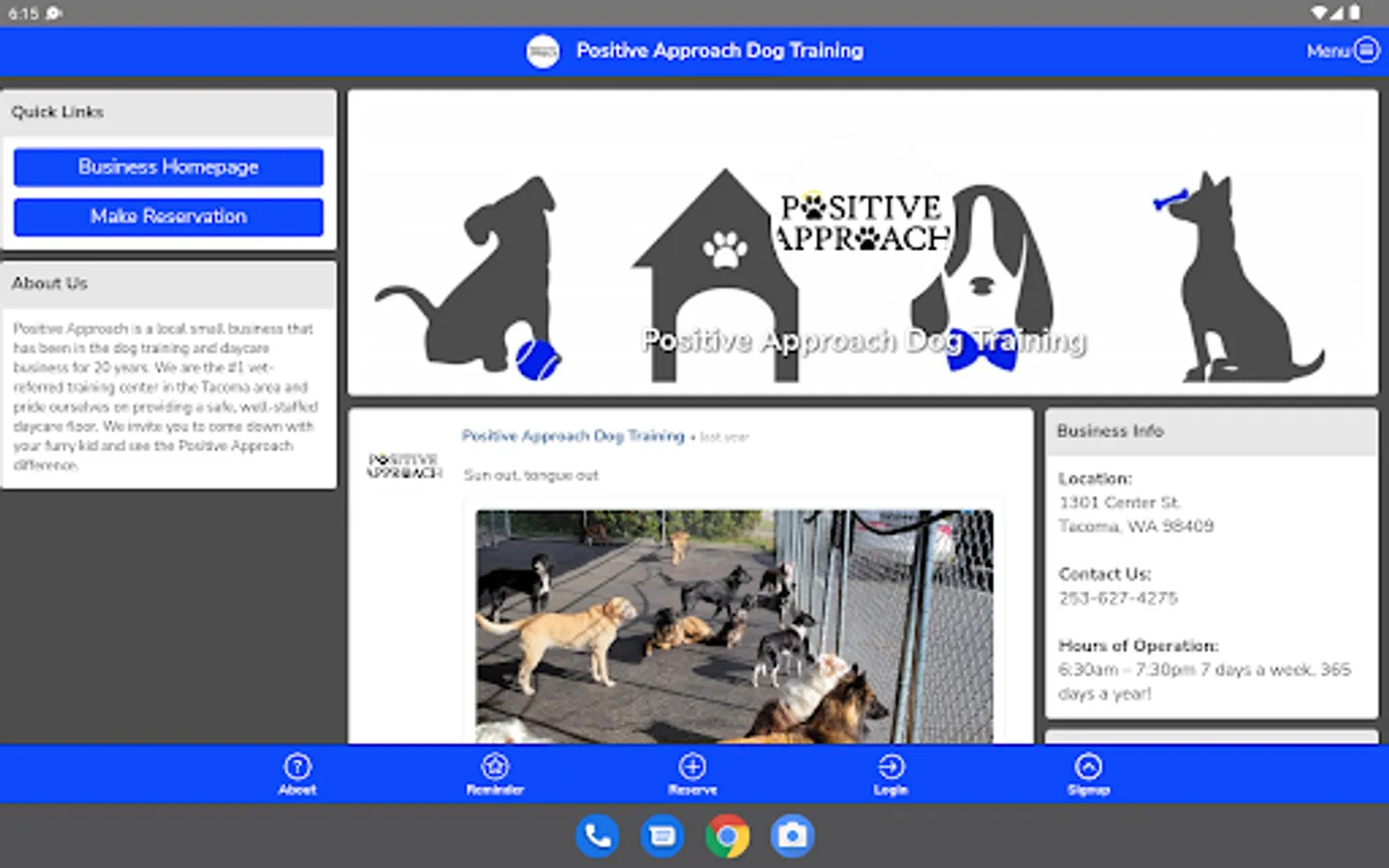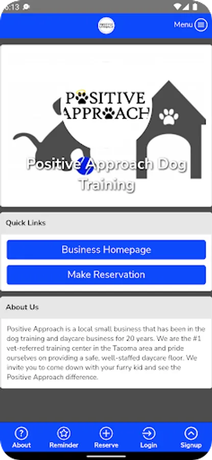 The Positive Approach Dog Training App enables users to make reservations, purchase package credits, see and pay invoices, message with Positive Approach Dog Training, see photos of their pets, and more. Employees of Positive Approach Dog Training are able to manage the business and connect with customers. This app is made specifically for the customers and employees of Positive Approach Dog Training.
