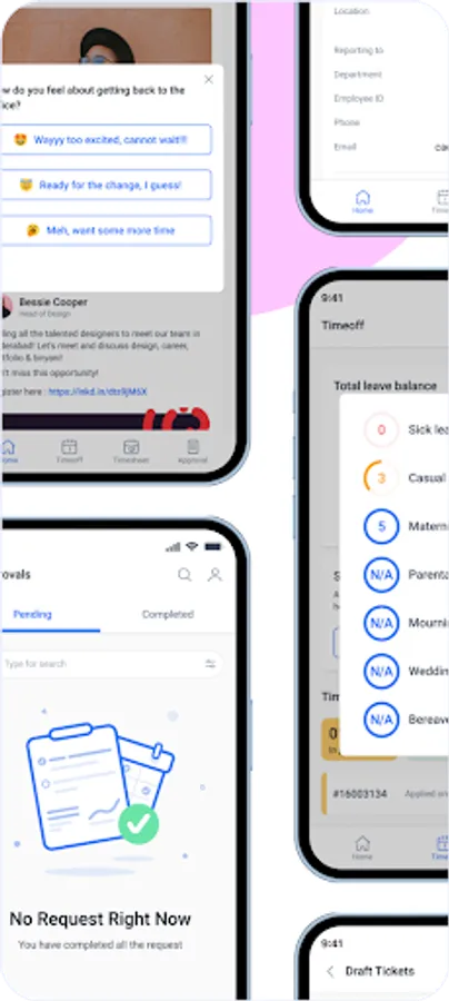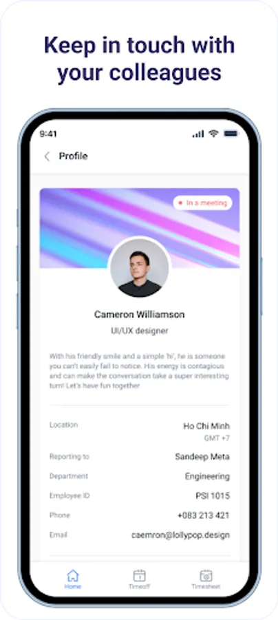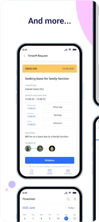 With this app you can keep in touch with your colleagues, apply timeoff, add your timesheets and access all your approval requests from one place.