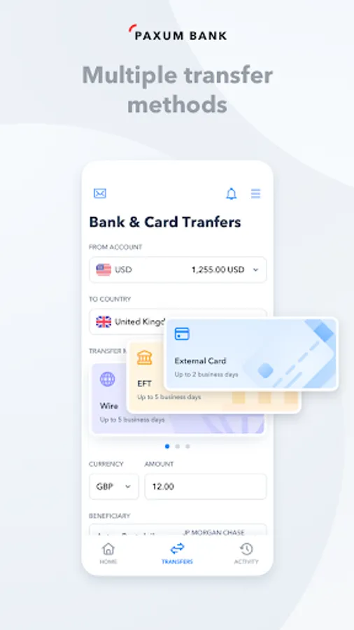At Paxum Bank we understand that in today’s global marketplace it is crucial to provide our clients with the ability to monitor their balance; send global transfers; receive activity alert push notifications; perform FX transfers; view recent activity; and more, not just through the desktop interface, but also through a secure, easy-to-use, and functional Smartphone App.