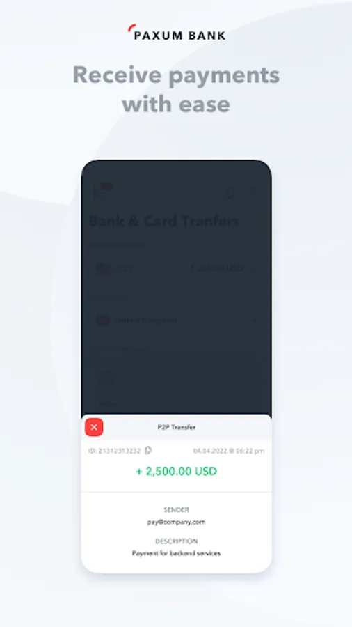 We have developed and designed the Paxum Bank App to offer our clients the functionality of their Paxum Bank account through the convenience of a secure digital app that will work on any Android Smartphone. We invite you to download the Paxum Bank app today and discover its versatility for yourself!