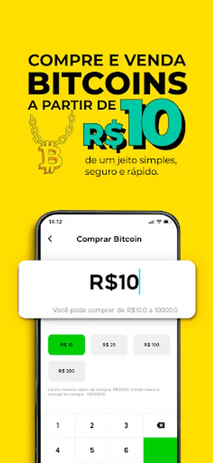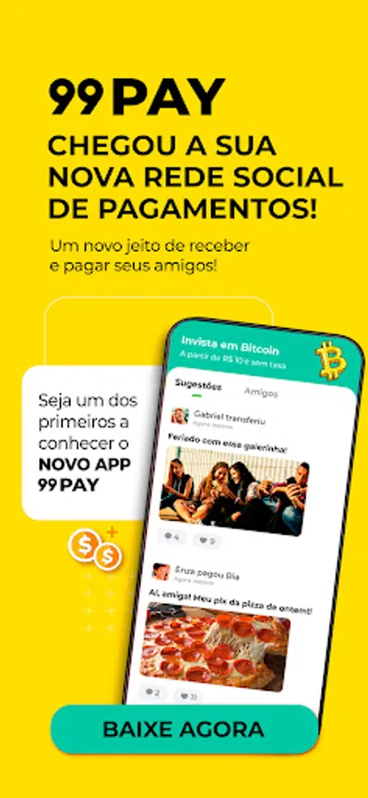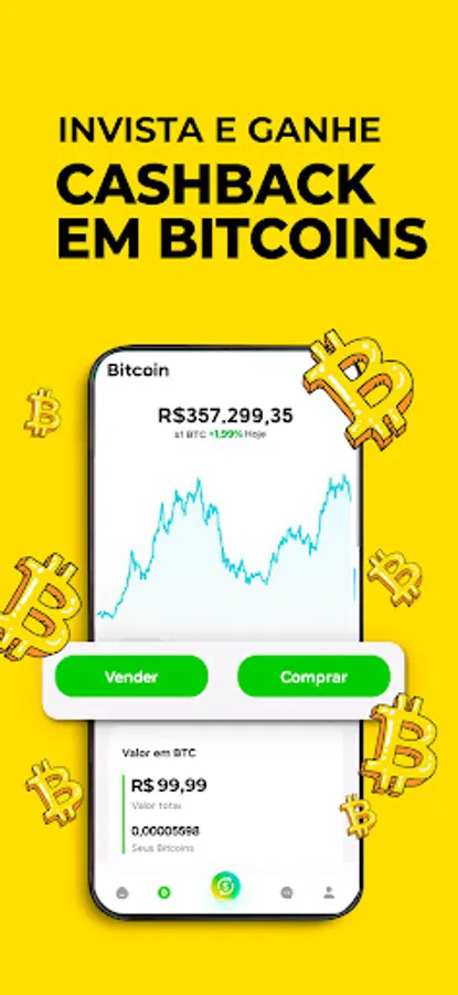 Buy and sell bitcoins, without fees, from R$10 in a simple, safe and easy way, as you can redeem the amount invested in reais at any time within the new 99Pay App.