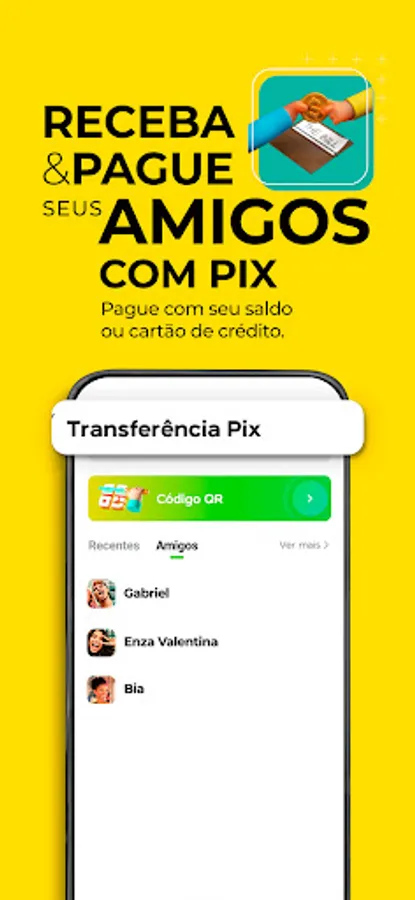 With your PIX key registered at 99Pay, you can receive and pay using your balance or credit card.