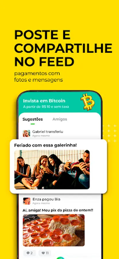 After making a transfer via PIX, post a message, photo or a sticker in your feed and share it with your friends.