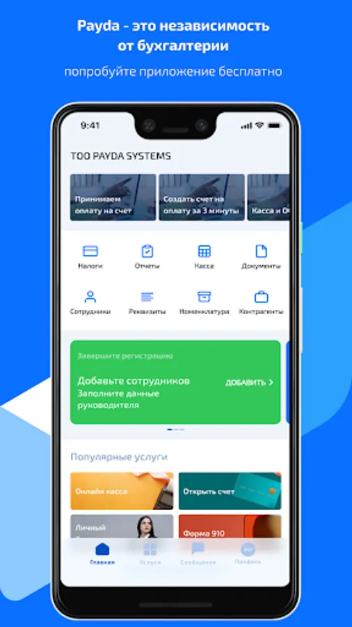 PAYDA is a service of accounting services for individual entrepreneurs and limited liability partnerships (legal entities) on a simplified tax regime.