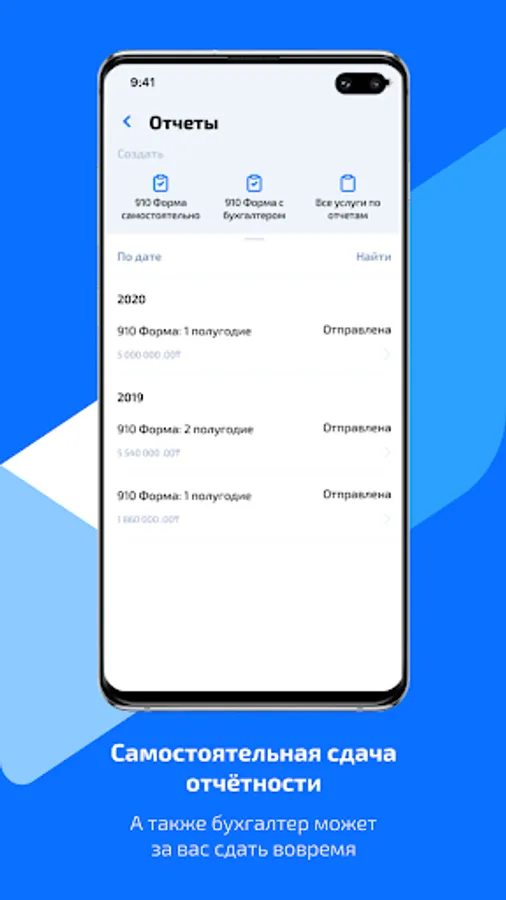 Manage accounting everywhere. After all, the phone is always at hand, and the personal accountant is in touch. With Payda, you can pay taxes in one click, create primary documents for free, submit a 910 form, keep everything under control. Leave the whole routine to us, then calmly do business.
