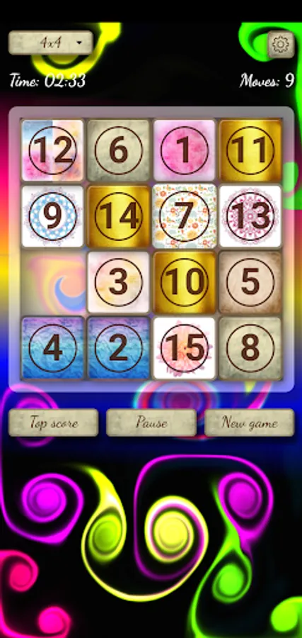 Sliding Puzzle 2345 is combination of all the "15 Puzzle", also called Gem Puzzle, Boss Puzzle, Game of Fifteen, or Mystic Square, puzzle consisting of 15 squares, numbered 1 through 15, which can be slid horizontally or vertically within a four-by-four grid that has one empty space among its 16 locations. The object of the puzzle is to arrange the squares in numerical sequence with the space in the bottom right.