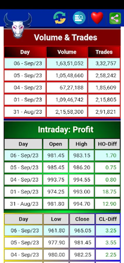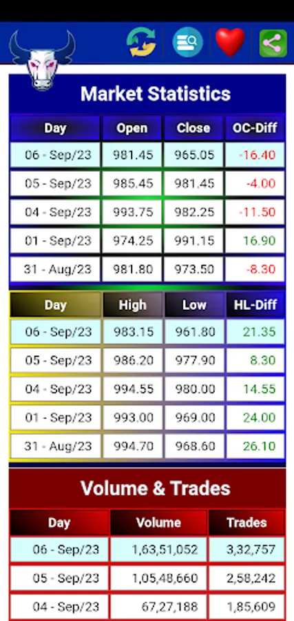 * Daily Statistics for Intraday traders.
