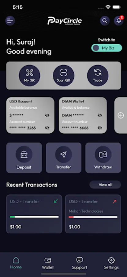 * Your money deposited in PayCircle is eligible for Federal Deposit Insurance Corporation (FDIC) coverage up to $250,000.00 USD.