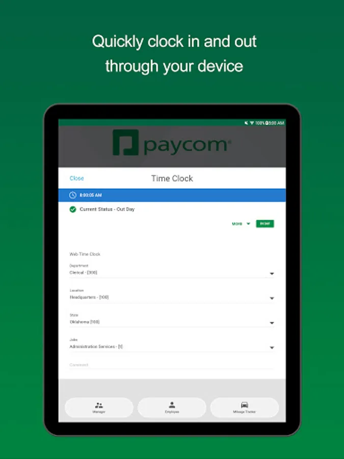 Expressly for employees who already utilize Paycom’s HR and payroll technology at work, the Paycom app puts the power of our Employee Self-Service technology on your mobile device. Please note that some Employee Self-Service features must be enabled by your organization’s Paycom administrator. If you have questions about these features, please connect with your HR/payroll department.