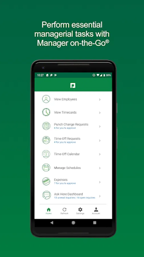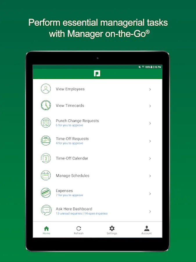 Because work doesn’t stop when managers are away from their desks, Manager on-the-Go helps them make the most of their workday. This mobile tool allows managers and supervisors to complete essential management tasks involving their employees from anywhere, including approving hours worked, time-off requests and expenses; viewing team members' schedules; and more.