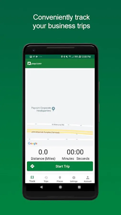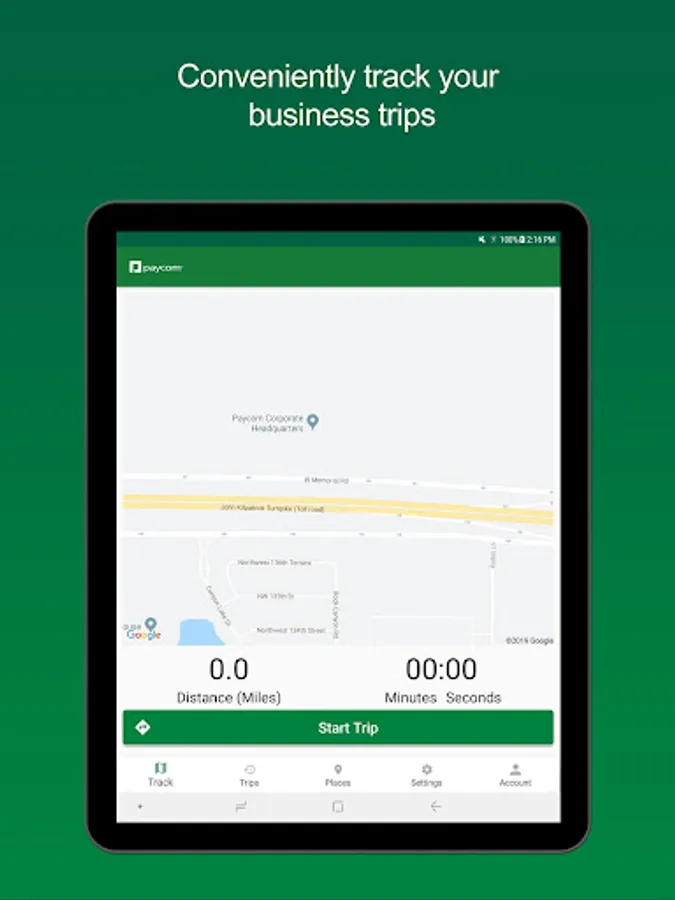 Conveniently track your business mileage with Paycom’s Mileage Tracker. Easily store copies of receipts for quick reimbursement, sync your existing trip information to Employee Self-Service and even set up automatic tracking to streamline your expense submission process. Missing a certain feature? Reach out to your HR department!