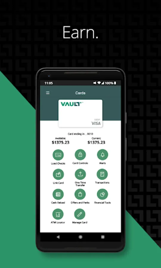 The My Vault Card app empowers you to manage and protect your finances in a way tailored to fit your lifestyle through: