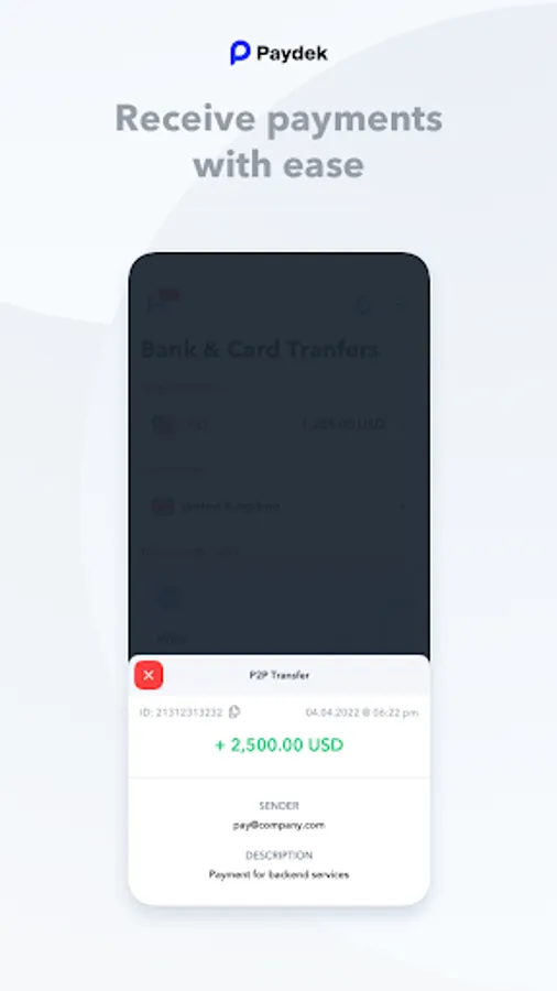 Paydek allows online companies to issue mass payments instantly around the world, and we’re proud to present the authentic Paydek App available for download to any Android Smart Phone. Paydek is authorized by the Financial Conduct Authority under the Payment Service Directive to provide Payment Services. Paydek is PSD2 compliant and is also a member of SWIFT.