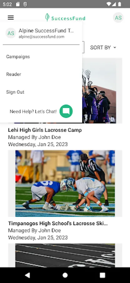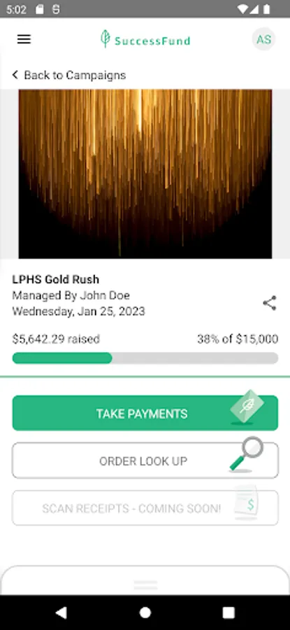 Sign in to the SuccessFund app to access your free online campaigns. From there, start accepting payments and managing order fulfillment for pickup, delivery, or admission.