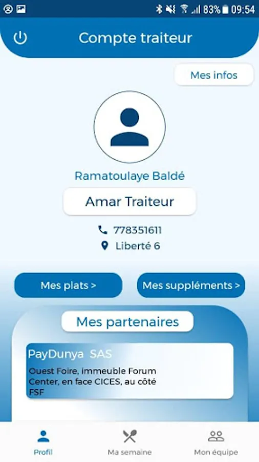 -As a caterer, to be able to record your dishes and your supplements with which you can program your menus for the week. You will also be able to accept partnership requests and see the list of your orders by company.