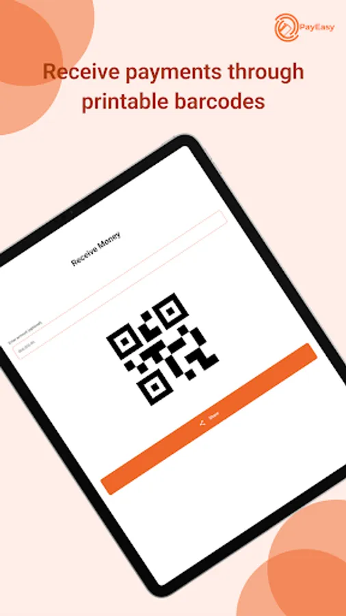In addition, our app also allows you to receive payments through a printable barcode. This barcode can be easily generated within the app and printed on paper, making it a convenient option for merchants and individuals who prefer physical receipts.