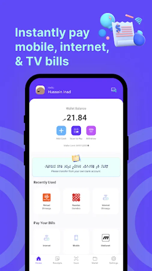 - Cash-in to Mobile Wallets (Dhiraagu Pay)