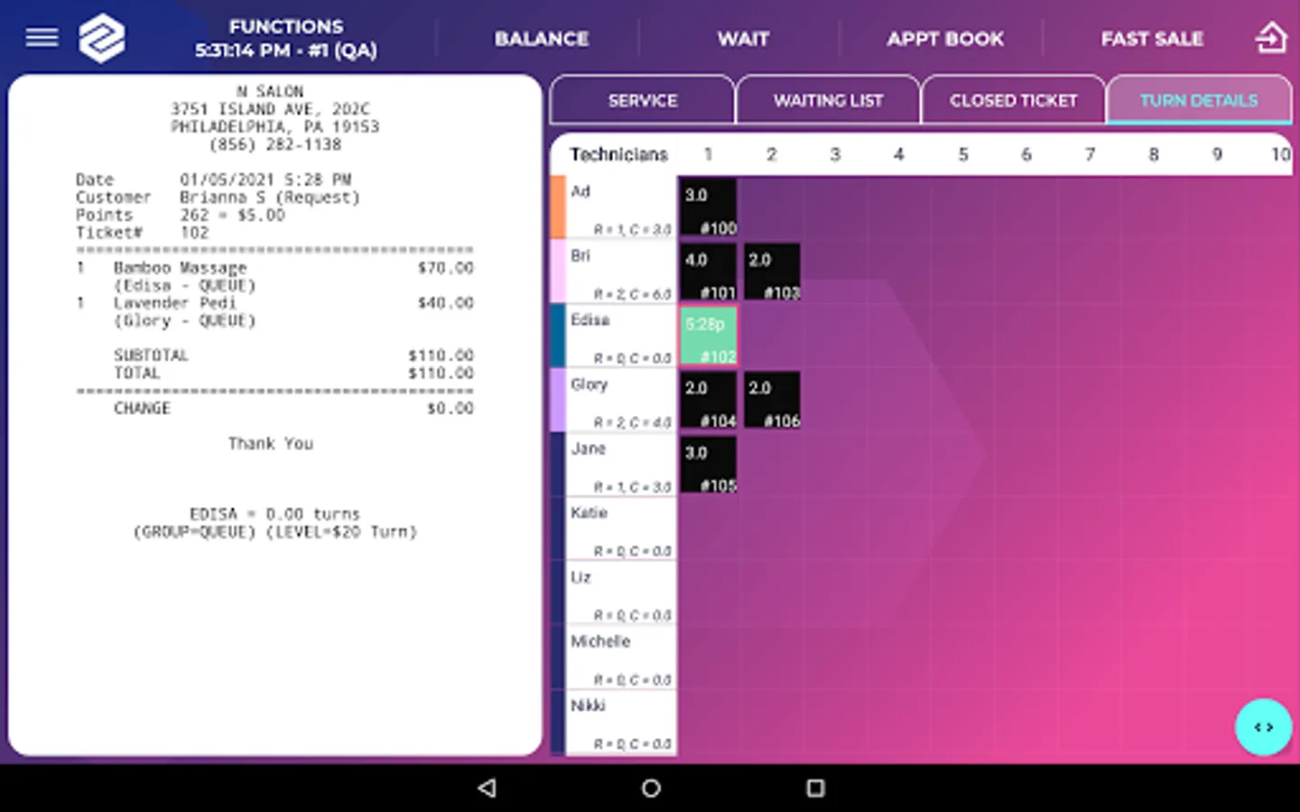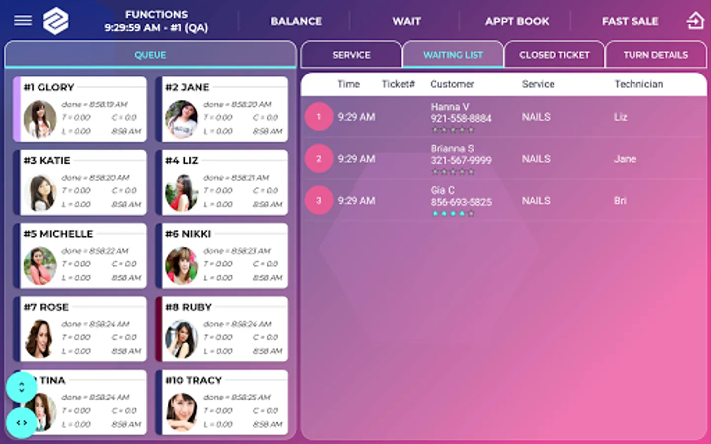 We understand that assigning turns for technicians is the most controversial issue of a nail salon. Our turn management feature will take the pain out of your problem, saving you time, money, and more importantly, creating the harmony in your nail salon. Moreover, our POS provides the flexibility to tailor the turn management to your salon's particular needs.