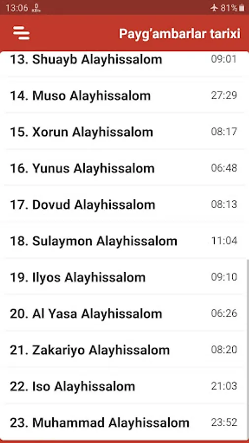 Ilova Payg'ambarlarimiz hayoti haqida yoritilgan qissalar to'plami bo'lib, qissalar audio formatda.