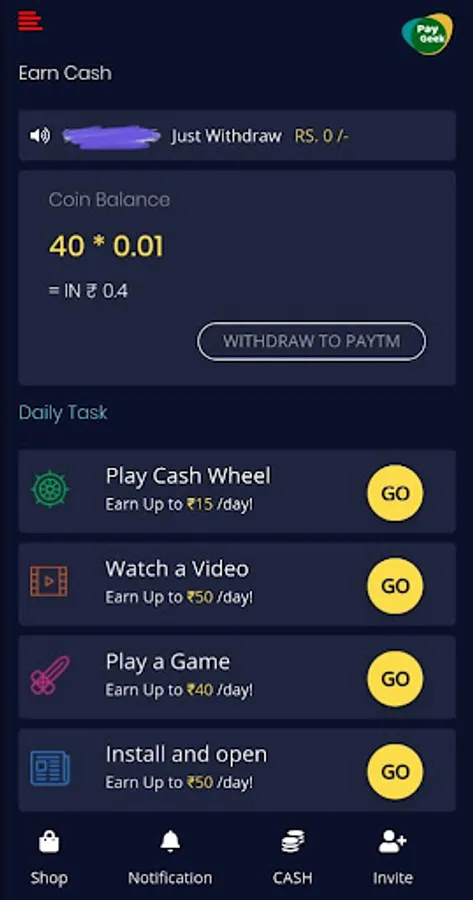 With the click of Share button, you can refer your friends, family members, co-workers even someone you just met! The more people you refer, the more money you can make. You can earn money by spinning and watching video.Its easy to do and easy to earn.