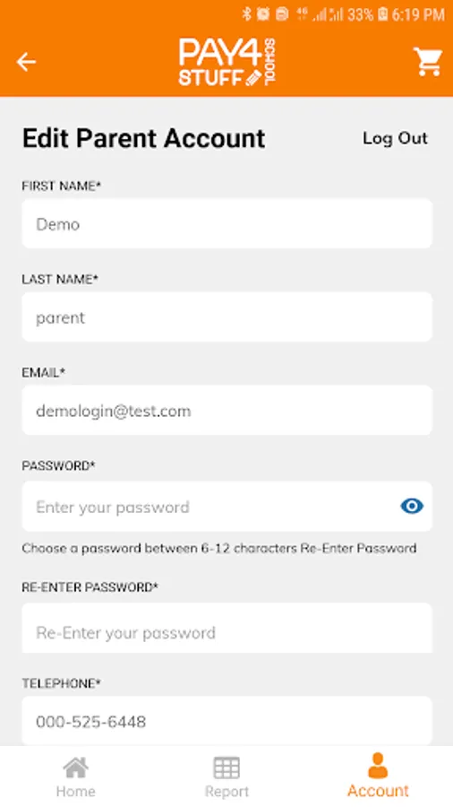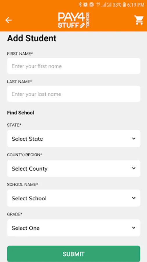 NOTE: You must create your account at www.pay4schoolstuff.com before using the mobile app.