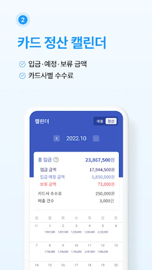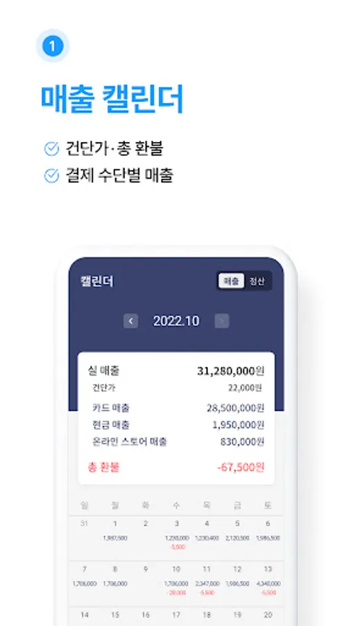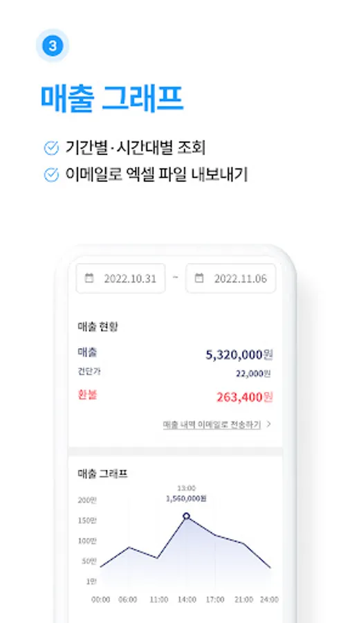 ② Sales calendar: Inquire sales/refund amount by period, and send Excel file by e-mail