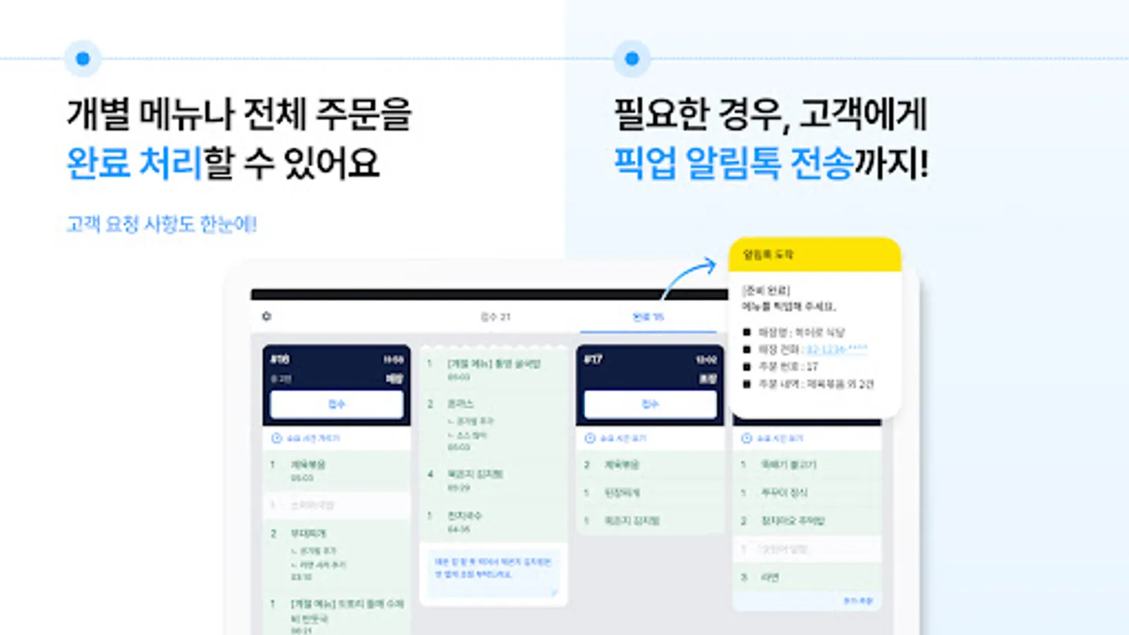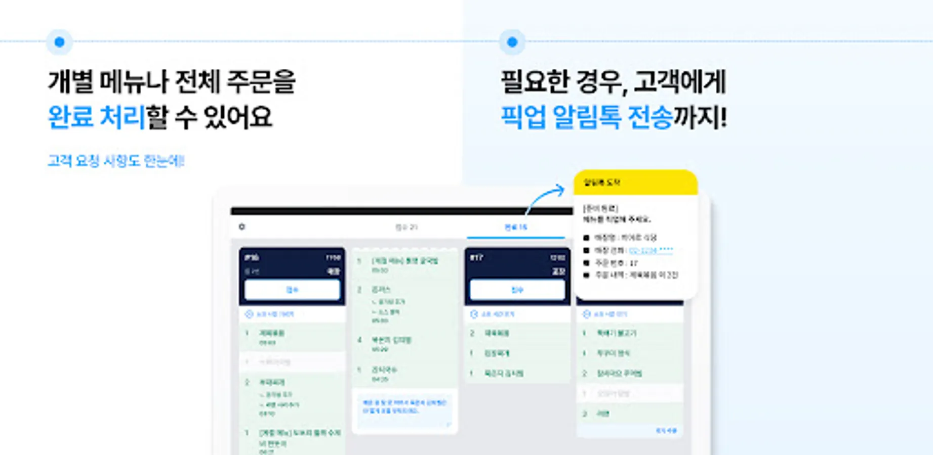 - Handle individual menus or entire order completion